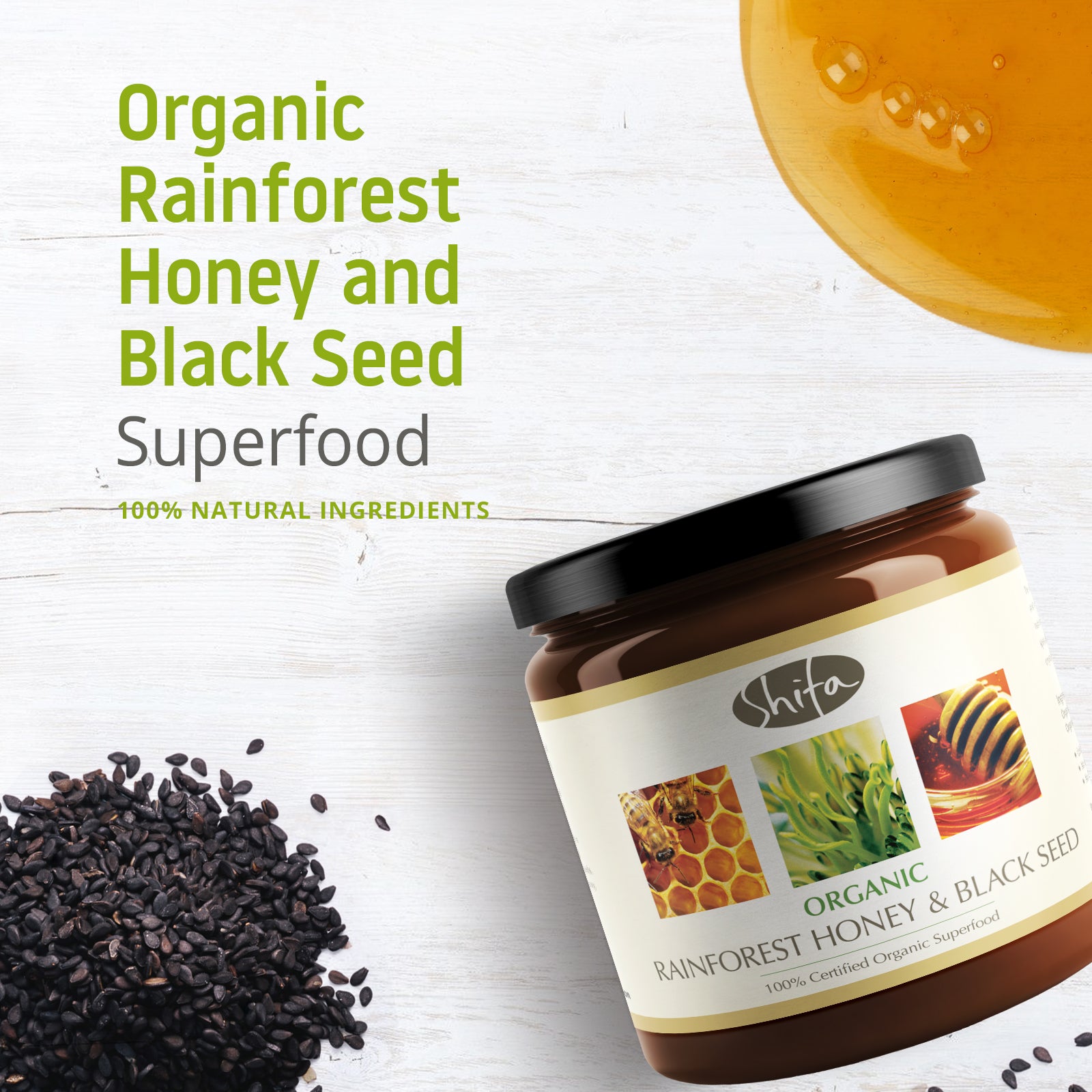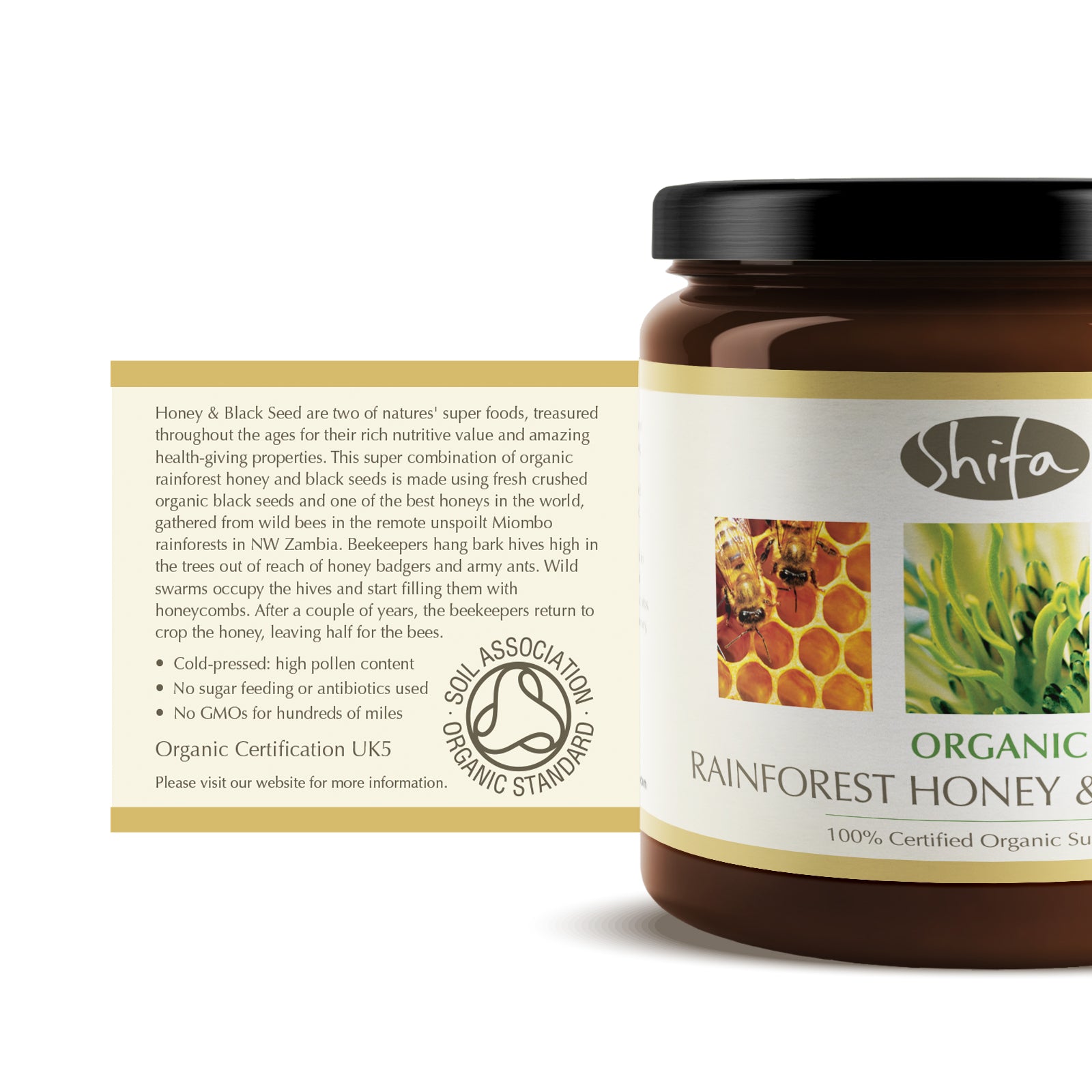 Honey and Black Seed are two of natures super-foods, treasured throughout the ages for their rich nutritive value and amazing health-giving properties. This super combination of organic rainforest honey and black seeds is made using fresh crushed organic black seeds and one of the best honeys in the world gathered from wild bees in the remote and unspoilt Miombo rainforests in NW Zambia.
